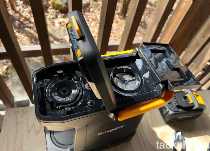 バッテリーだけでなくACコンセントが使えるのもポイント。