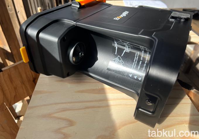 バッテリーはマキタなどの電気工具で馴染みある18Vの144Wh、それなりの電池が入っているので上図のように背面のスペース確保が必要となる。
