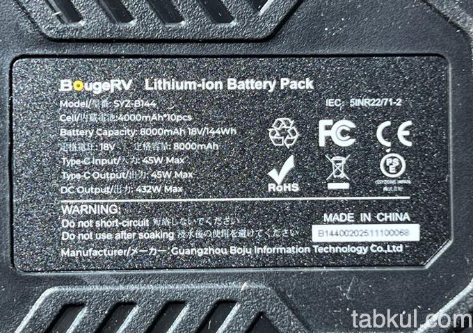 見えにくいが背面のスペックシートを撮影。
