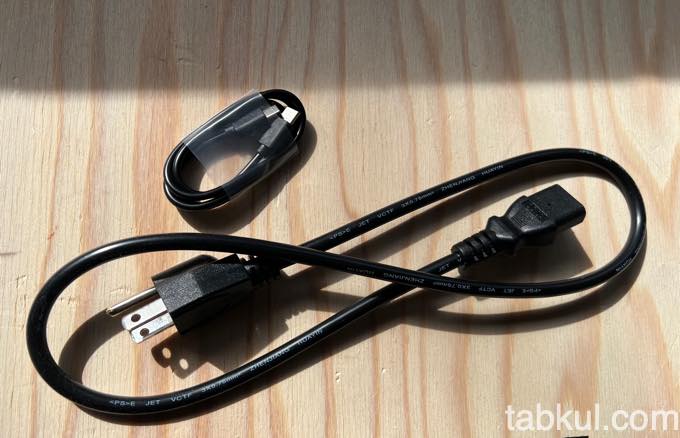 付属品のUSB-Cケーブルと3P電源ケーブル。