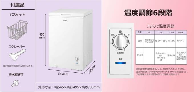 COMFEEでは45Lなどのミニ冷蔵庫も取り扱っているが、今回は冷凍庫オンリーで大容量99Lとなっている。冷凍食品ラバーが重宝しそうだ。