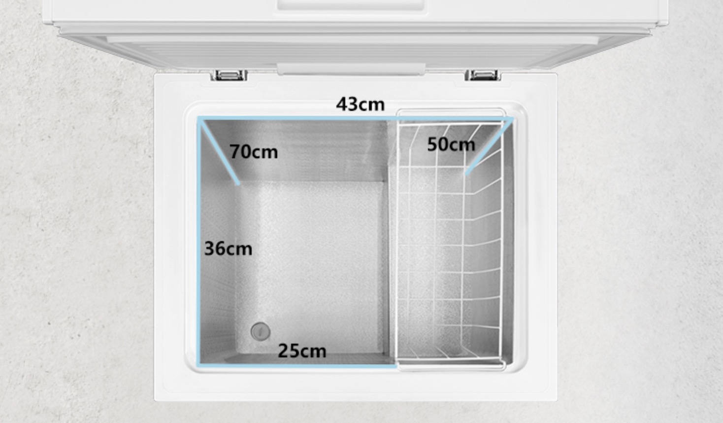 上図のように上開きで温泉施設のアイスボックスを連想させるデザイン、LEDライトも自動点灯するので真夜中の物資調達にも便利そうだ。