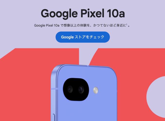 Google Japanは日本時間2026年2月19日、米国から少し遅れる形でGoogle Storeにて最新Pixel Aシリーズとなる「Google Pixel 10a」を発表した。