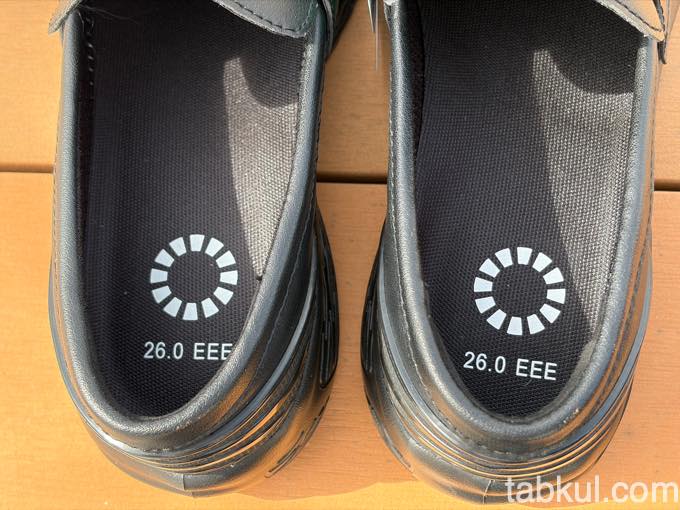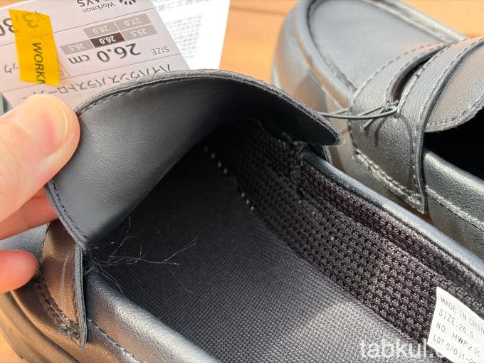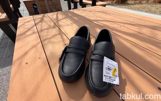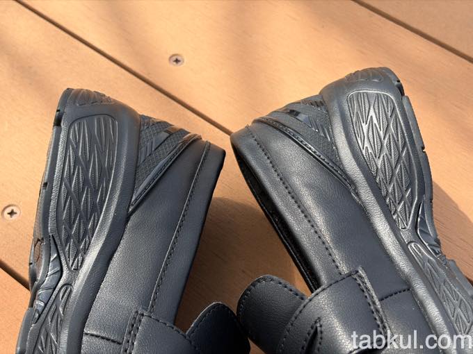 しまむらのローファースニーカーに比べて光沢感はない。あちらは女子向けなので当然なのだがワークマンは学生感は薄いと思う。