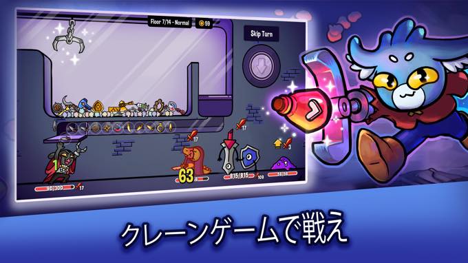 – ユニークなクレーンゲームメカニック:リアルタイムでクレーンゲームを操作し、武器や防具、アイテムをつかみ取ろう。正確な操作で必要なものをつかみ取り、戦略を練ろう。つかみ取りが勝利の鍵を握っている。