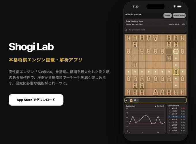 リンク:将棋Lab – Sunfish Engineアプリ – App Store