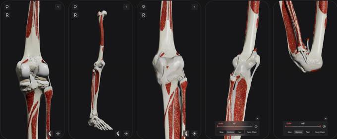 屈曲および伸展時のスクリューホーム機構を含む膝の生体力学を示すインタラクティブな動作シミュレーションにより、機能的な動作パターンをより深く理解できます。