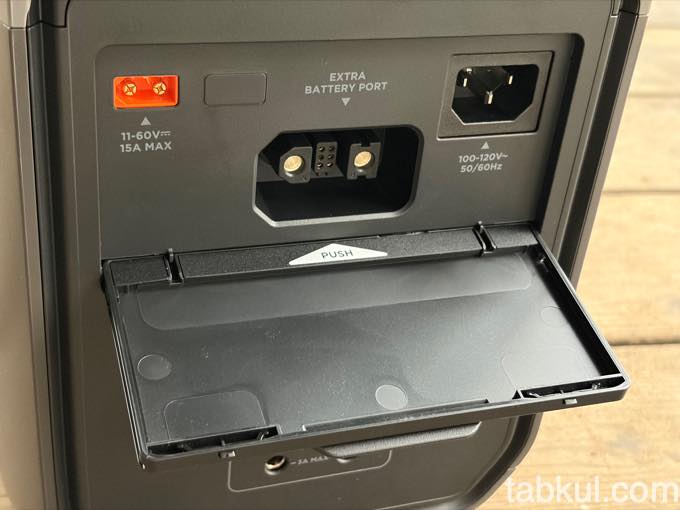 また上図の中央にあるポートはエクストラバッテリーポートというEcoFlowが販売する拡張バッテリーの接続口となっている。私は12V/200Ahを勝手に拡張バッテリーとして使っているので使うことはないだろう。