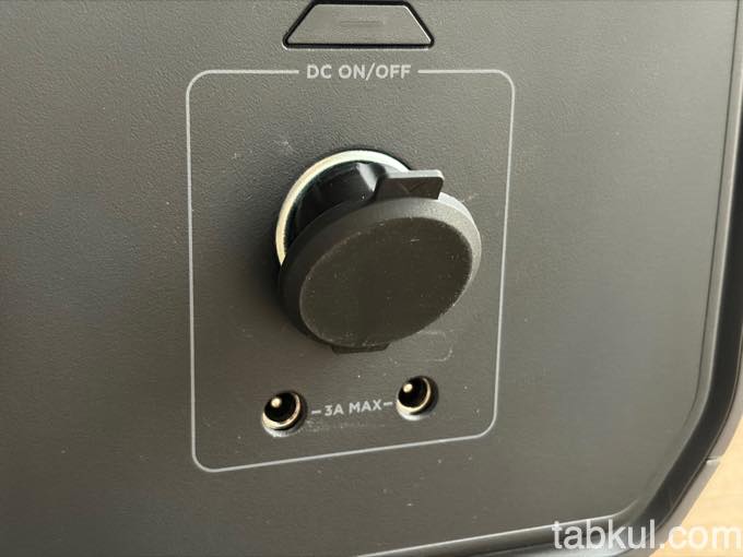 「DC ON/OFF」と書かれた上にあるボタンを押すことでDC出力が有効になり、シガーソケットとDC5521ポートが使えるようになる。