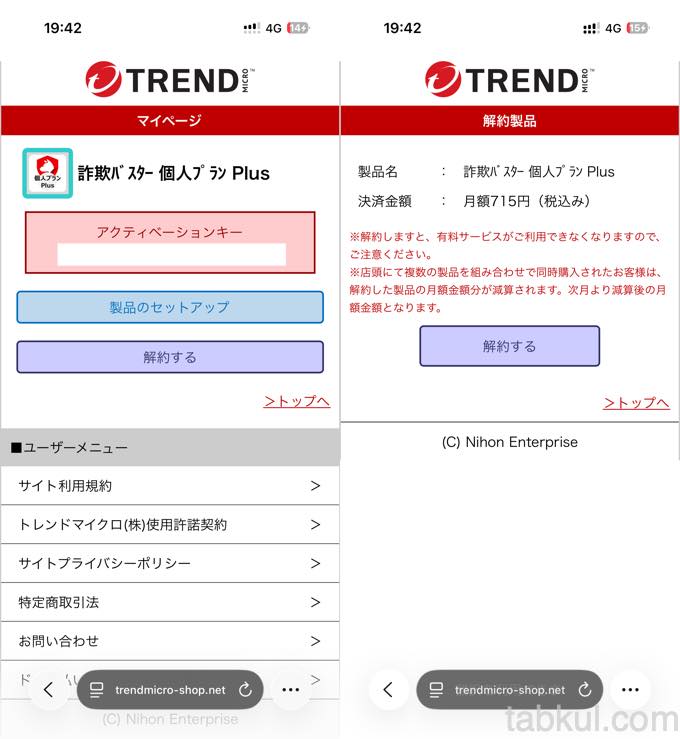 かなり分岐というかFAQなどで案内されていないページで作業するため、解約するにはトレンドマイクロのサポートが全くないなかで針の穴を通すような手順が必要になる。