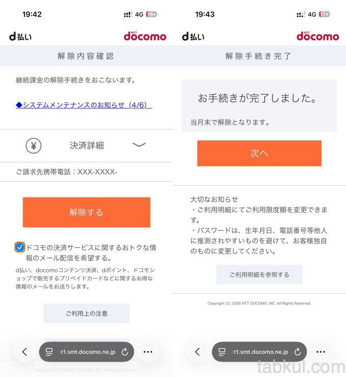 - d払いによるサブスクリプションの解除(専用アプリが必要)→失敗