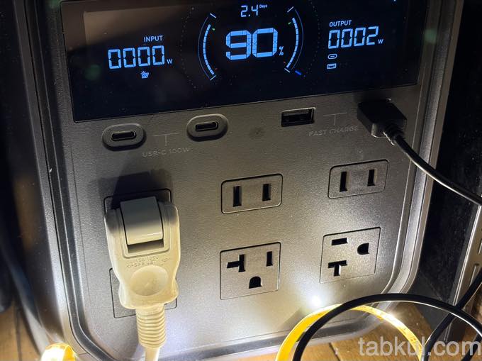 そういった環境でACコンセントはポータブル電源あるいはインバーターの「ACボタン」を押して電池から12.8Vを吸い出して100Vへ昇圧するという莫大な電力ロスは看過できない。