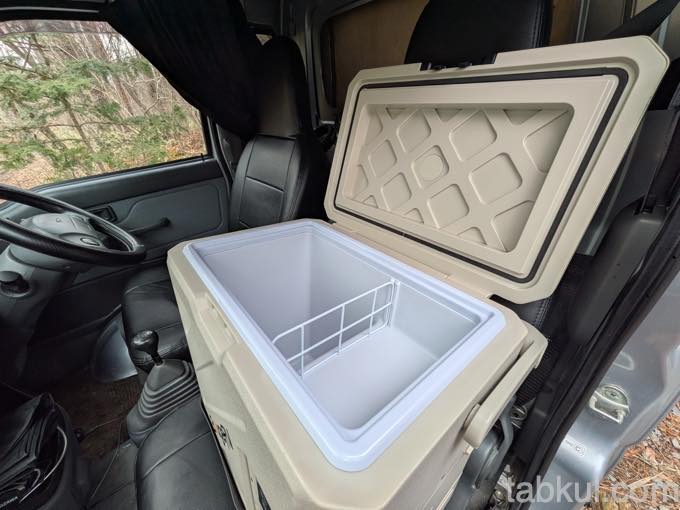 深い部分は牛乳パックなら縦に置いても余裕がある高さを確保、私の場合はベース車体が軽トラなので振動が大きい。そんな時も、この深い庫内によって縦置きできるから牛乳がこぼれない。
