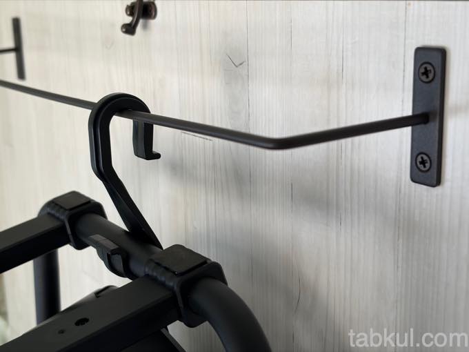 バッテリー内蔵ながら1.49kgと軽いので上図のようにセリアのアイアンバーでも支えられる。